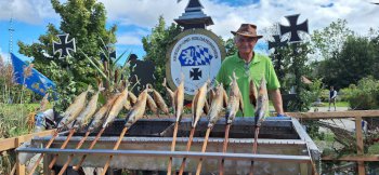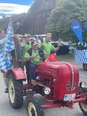 Ein besonderer Dank gilt unserem Ehrenmitglied Karl Heinzinger, der uns mit seinen hervorragenden Steckerlfischen verwöhnte, sowie Eckart Rückwardt, der mit seinem Oldtimer Porsche - Schlepper unseren Festwagen zog.