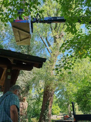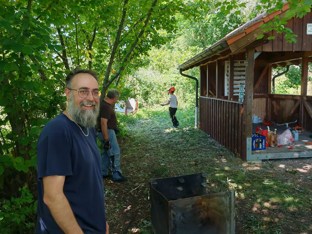 Beim zweiten Arbeitsdienst packten die wenigen Teilnehmer kräftig an. Neben den regelmäßigen Mäharbeiten am Bootsliegeplatz und rund um die Fischerhütte wurden auch die Angelplätze am Tosbecken freigeschnitten. Außerdem konnten wir mit einer Hebebühne abgestorbene Äste oberhalb der Sitzgelegenheit an der Fischerhütte entfernen und so unserer Verkehrssicherungspflicht nachkommen.