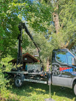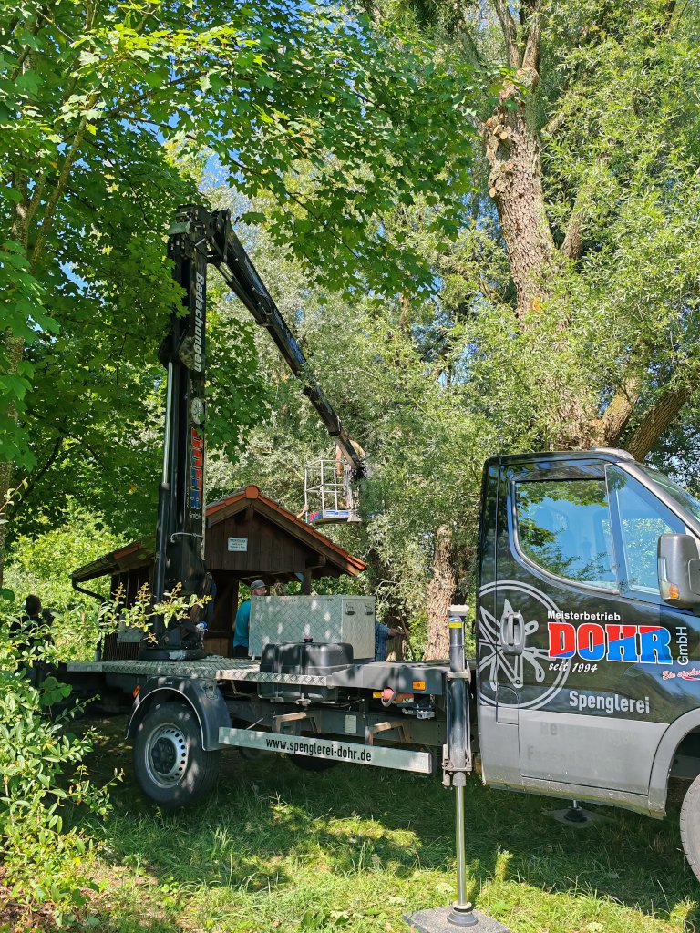 Beim zweiten Arbeitsdienst packten die wenigen Teilnehmer kräftig an. Neben den regelmäßigen Mäharbeiten am Bootsliegeplatz und rund um die Fischerhütte wurden auch die Angelplätze am Tosbecken freigeschnitten. Außerdem konnten wir mit einer Hebebühne abgestorbene Äste oberhalb der Sitzgelegenheit an der Fischerhütte entfernen und so unserer Verkehrssicherungspflicht nachkommen.