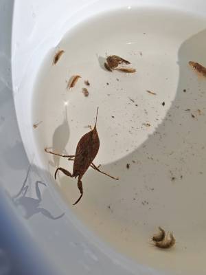 Das Highlight des Tages: ein Wasserskorpion und eine kleine Barbe