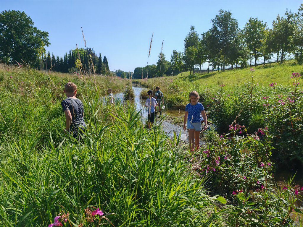 Auch in diesem Jahr nahmen wieder 12 Kinder im Alter von 7 bis 12 Jahren an der von der Gemeinde Eching angebotenen Bachsafari im Rahmen des Ferienprogramms teil. Gemeinsam untersuchten sie zwei Bereiche des Gewässers: die Fischtreppe sowie den Abschnitt hinter dem Rewe.